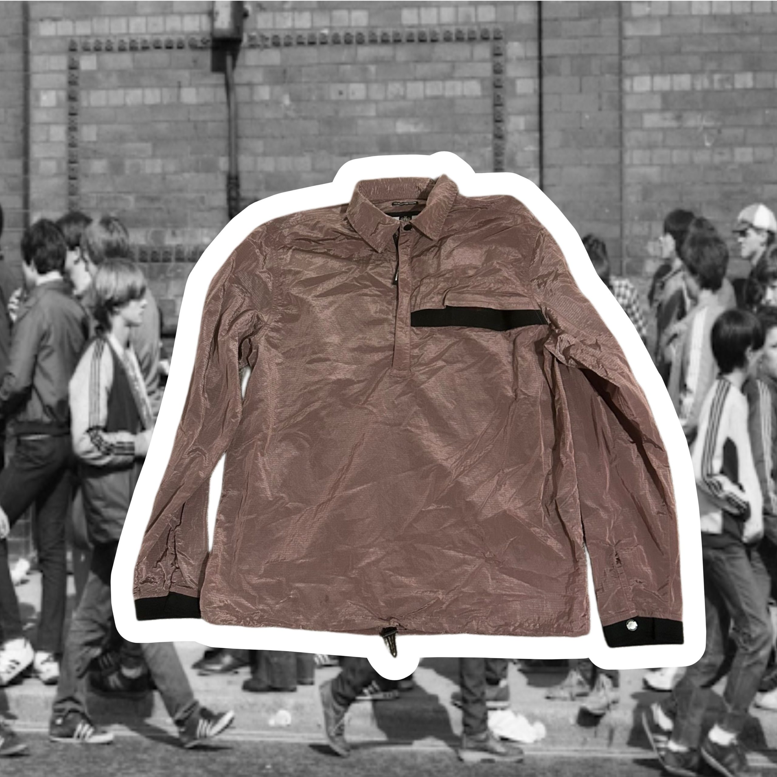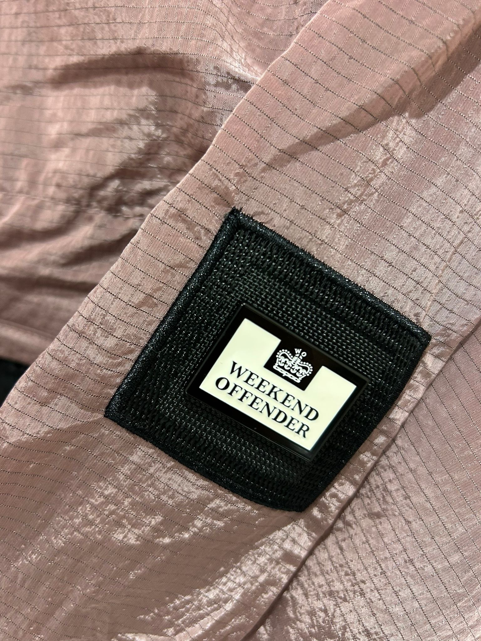 The Weekend Offender smock in size large is designed for those who embrace terrace culture and enjoy football away days, allowing you to stand out in any crowd. This stylish piece features a ripstop half-zip over-top made from 100% nylon ripstop fabric, ensuring durability and water resistance with its DWR coating. It includes a single front chest pocket, adorned with Weekend Offender branded jacquard tape, flat elasticated cuffs, and a drawcord at the hem for a customizable fit. Available in a striking Foxglove pink, this smock is the perfect addition to your wardrobe.